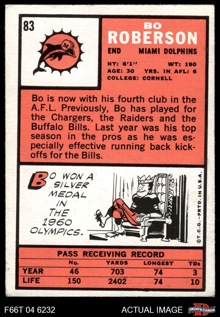 1966 Topps Football (694 available)1966 Topps Dolphins (102 available)