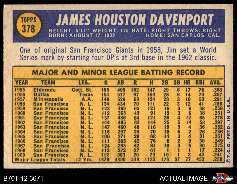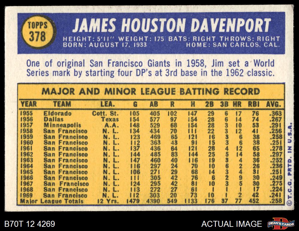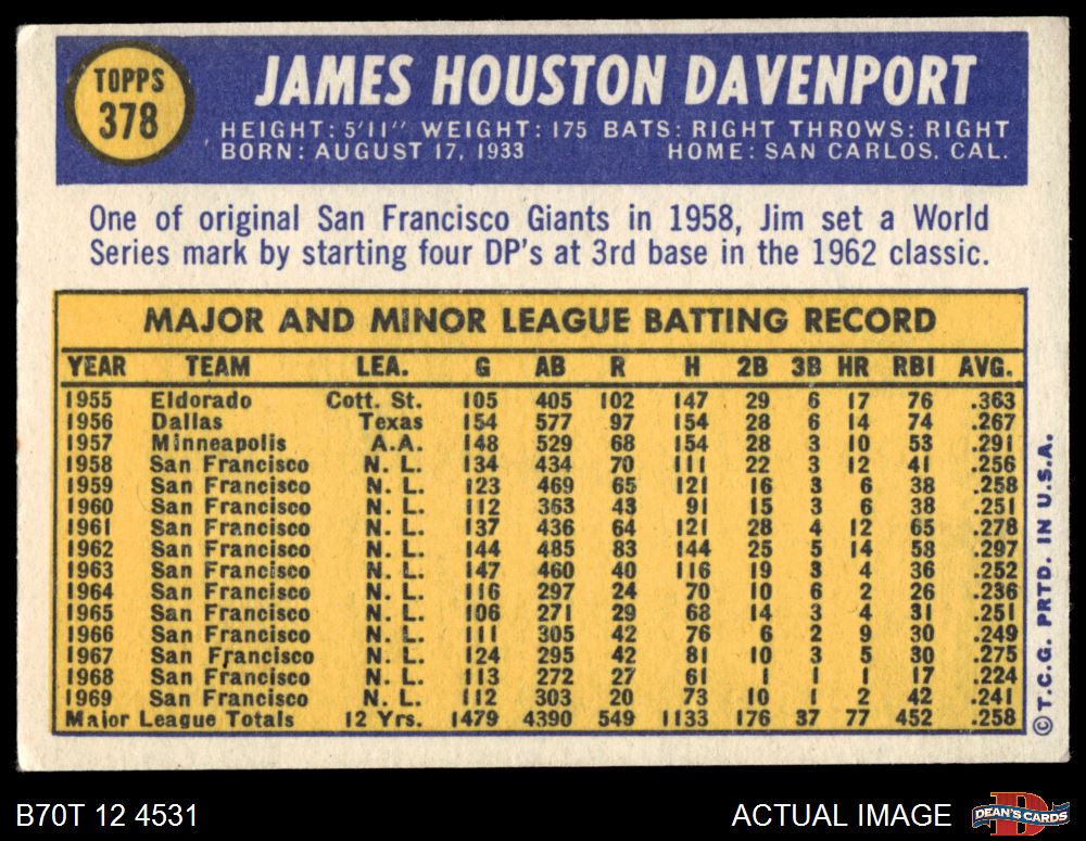 1970 Topps #378 Jim Davenport
