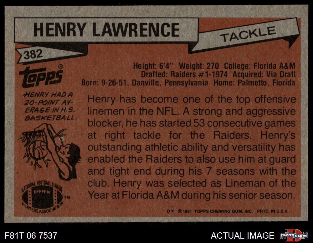 1981 Topps #382 Henry Lawrence 6 - EX/MT