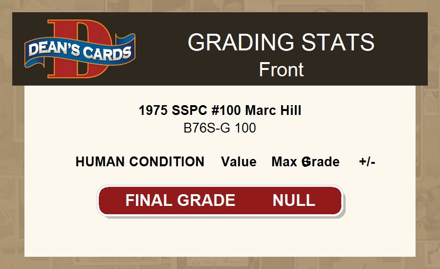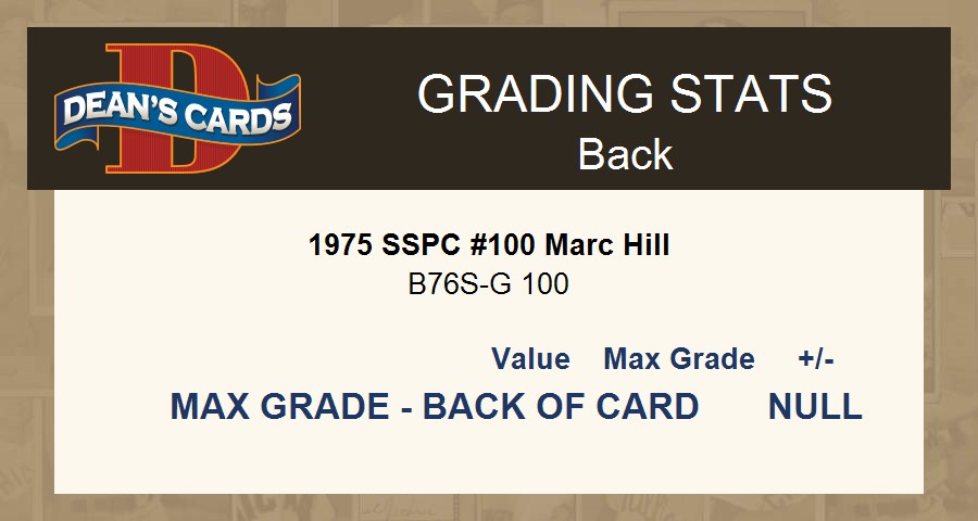 1975 SSPC #100 Marc Hill 8 - NM/MT
