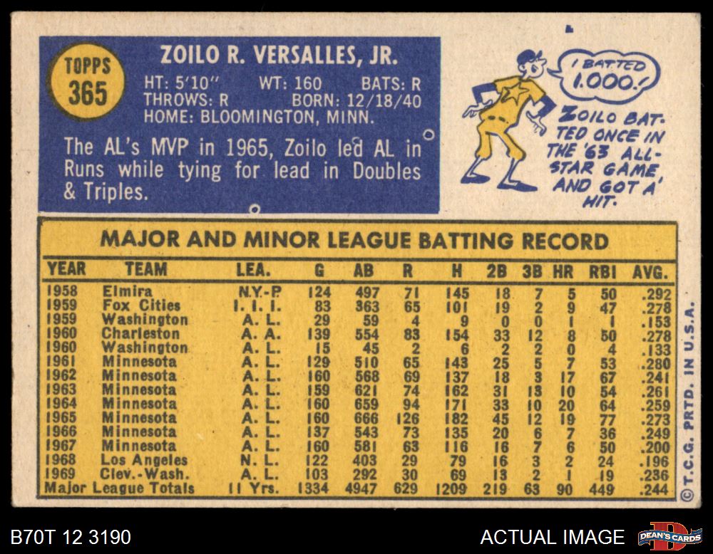 1970 Topps #365 Zoilo Versalles 4 - VG/EX