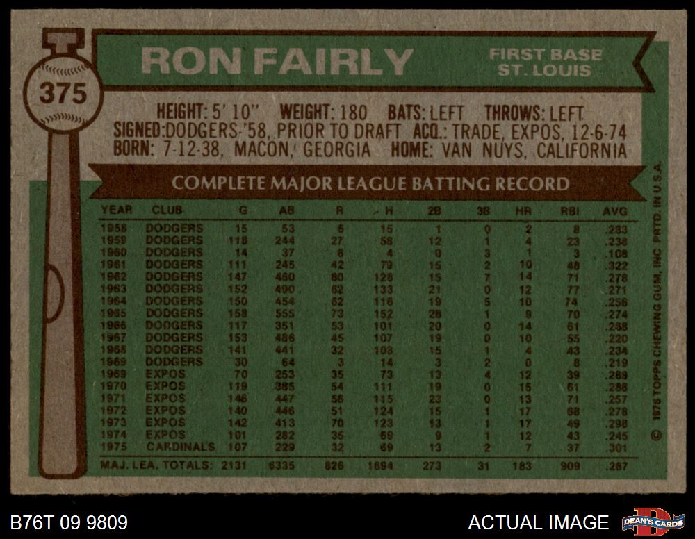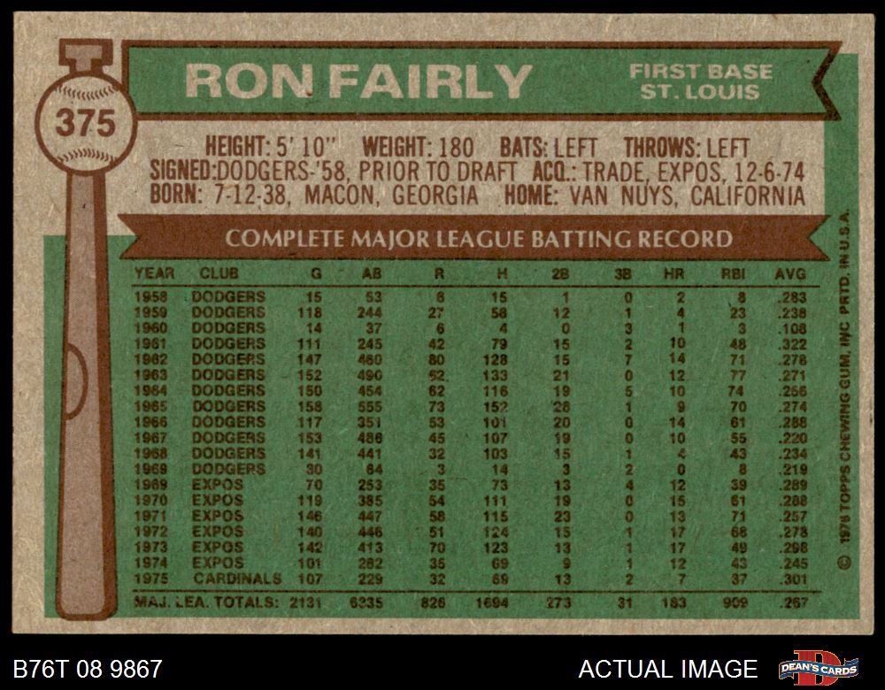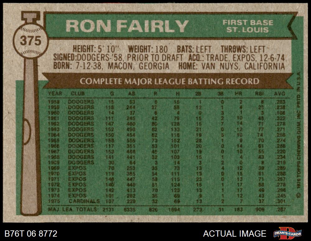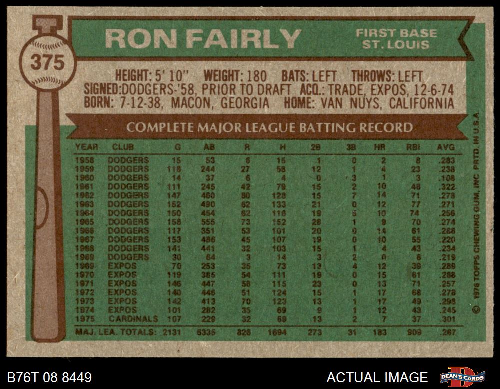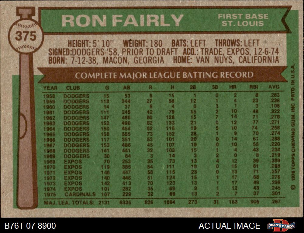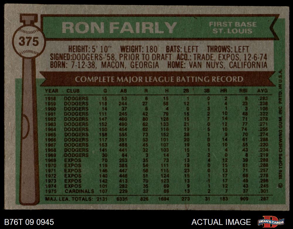 1976 Topps #375 Ron Fairly
