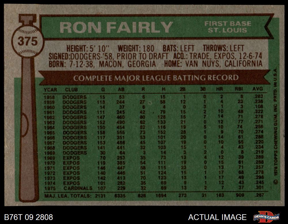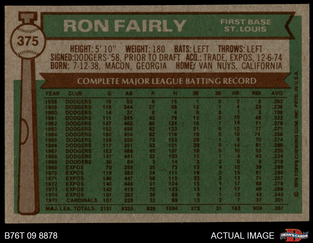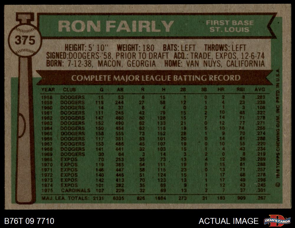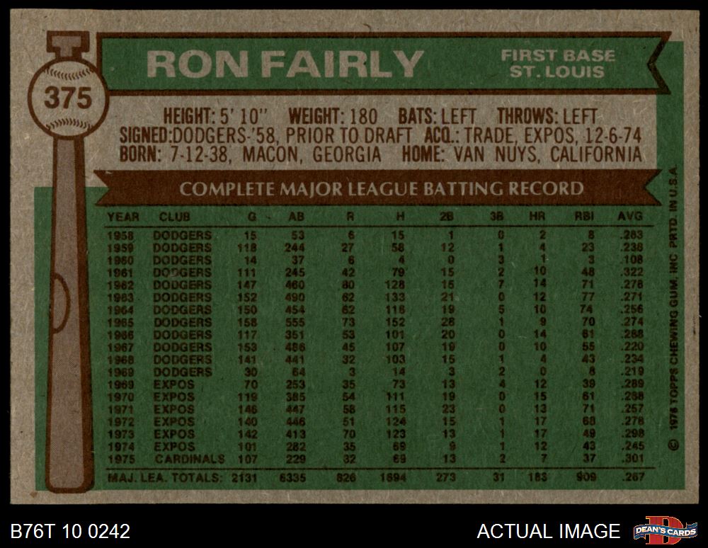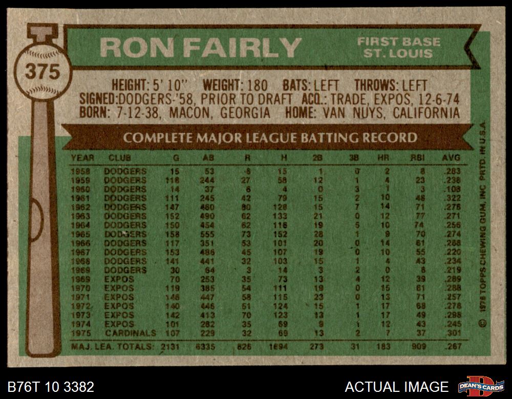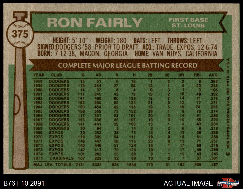 1976 Topps #375 Ron Fairly