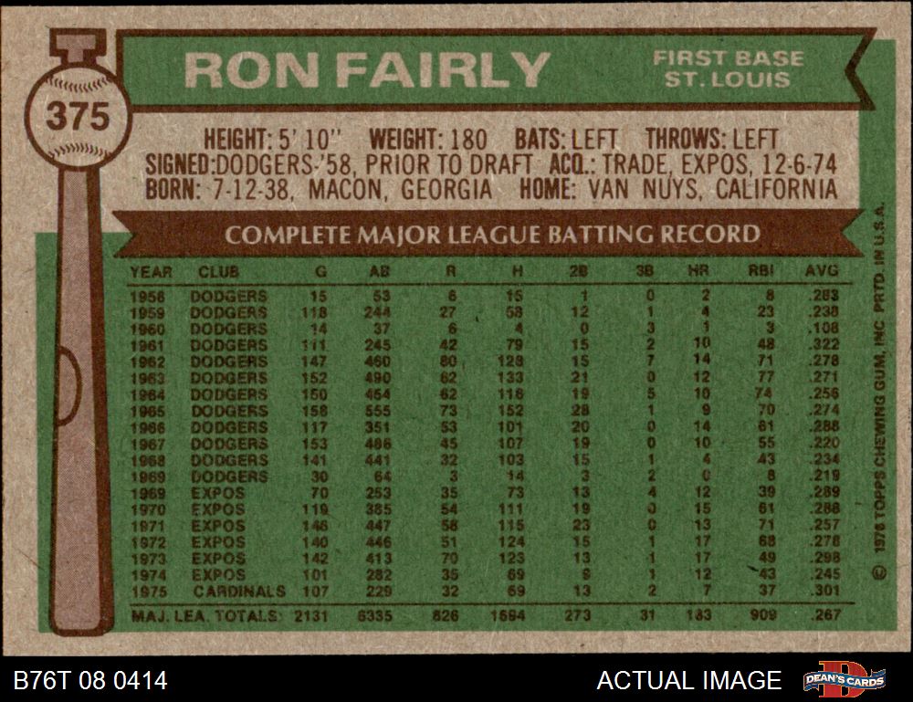 1976 Topps #375 Ron Fairly 8 - NM/MT