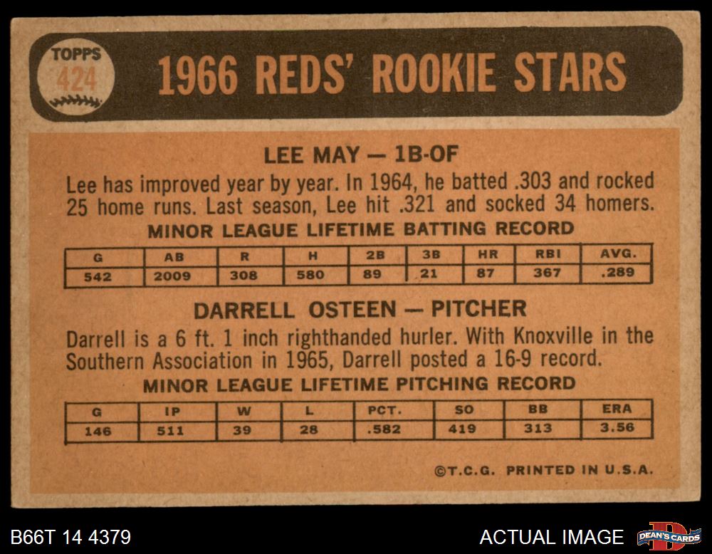 1966 Topps #424 - Lee May / Darrell Osteen Reds Rookies 3 - VG