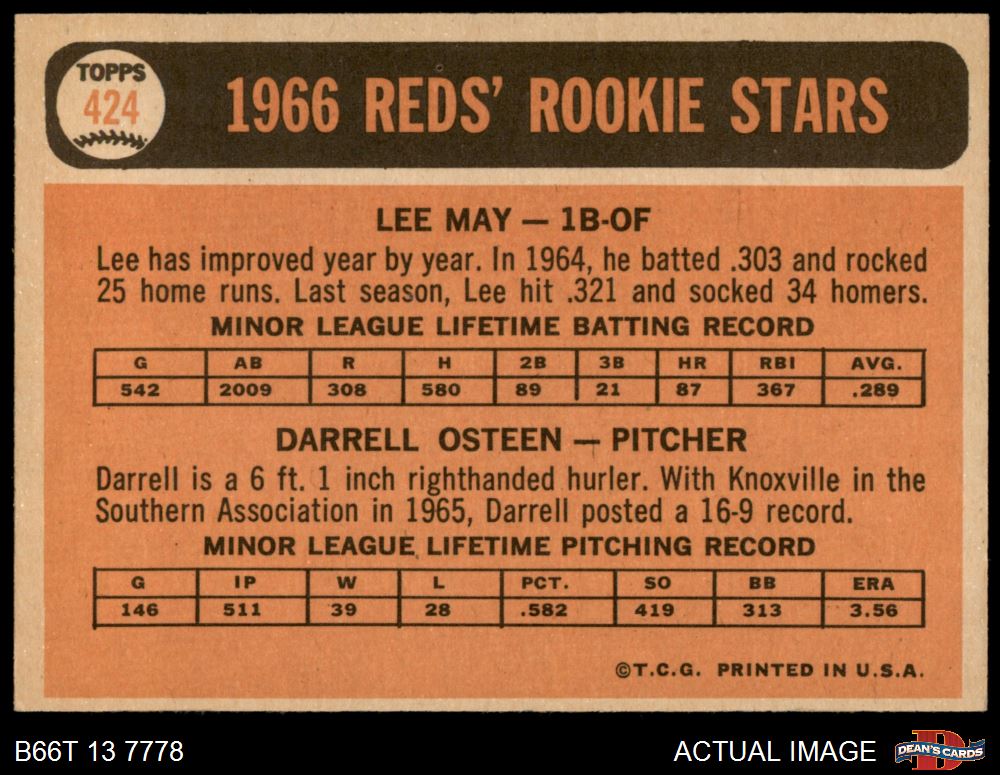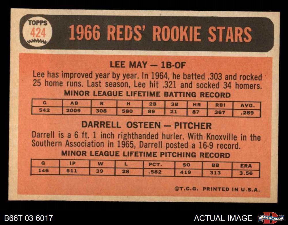 1966 Topps #424 - Lee May / Darrell Osteen Reds Rookies 5 - EX
