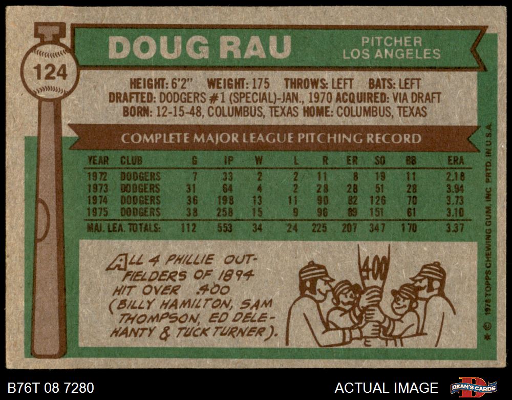 1976 Topps #124 Doug Rau 1.5 - FAIR