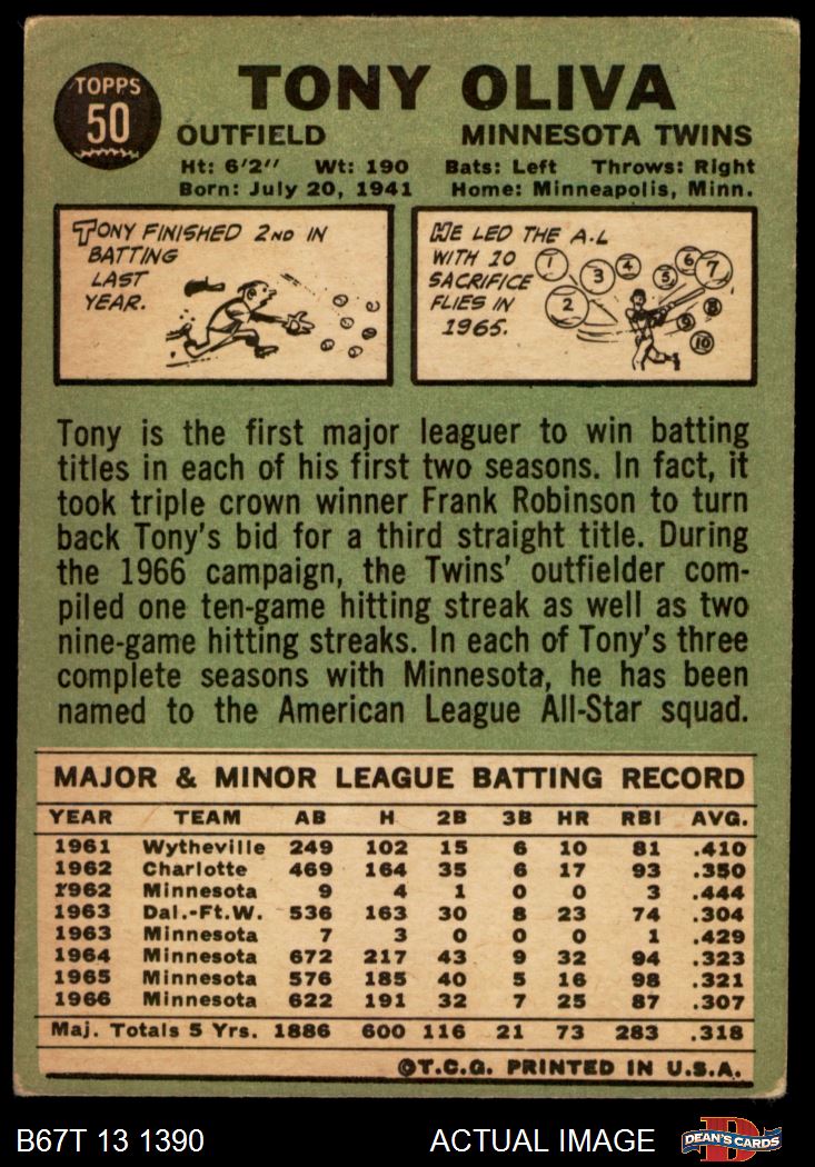 1967 Topps #50 Tony Oliva 3 - VG