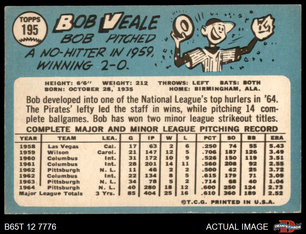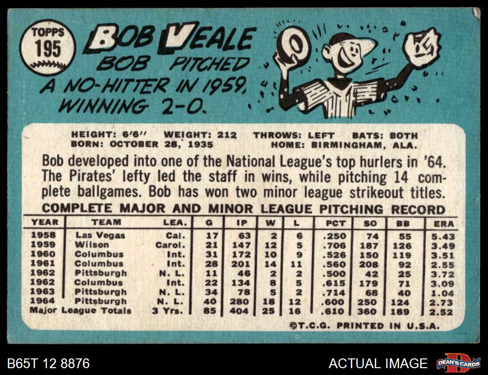1965 Topps #195 Bob Veale 2 - GOOD