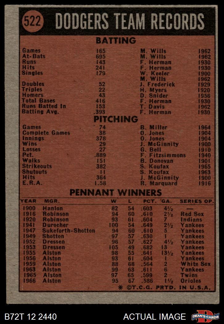 1972 Topps #522 Dodgers Team