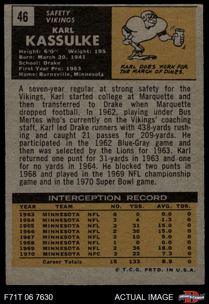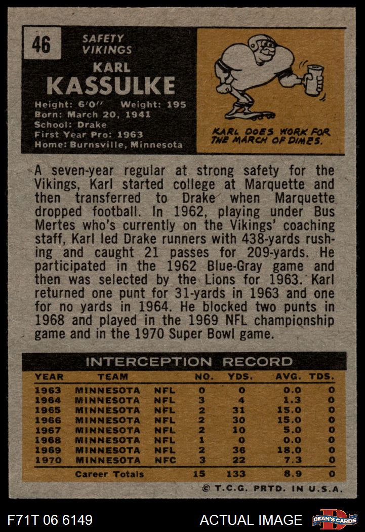 1971 Topps #46 Karl Kassulke 4 - VG/EX