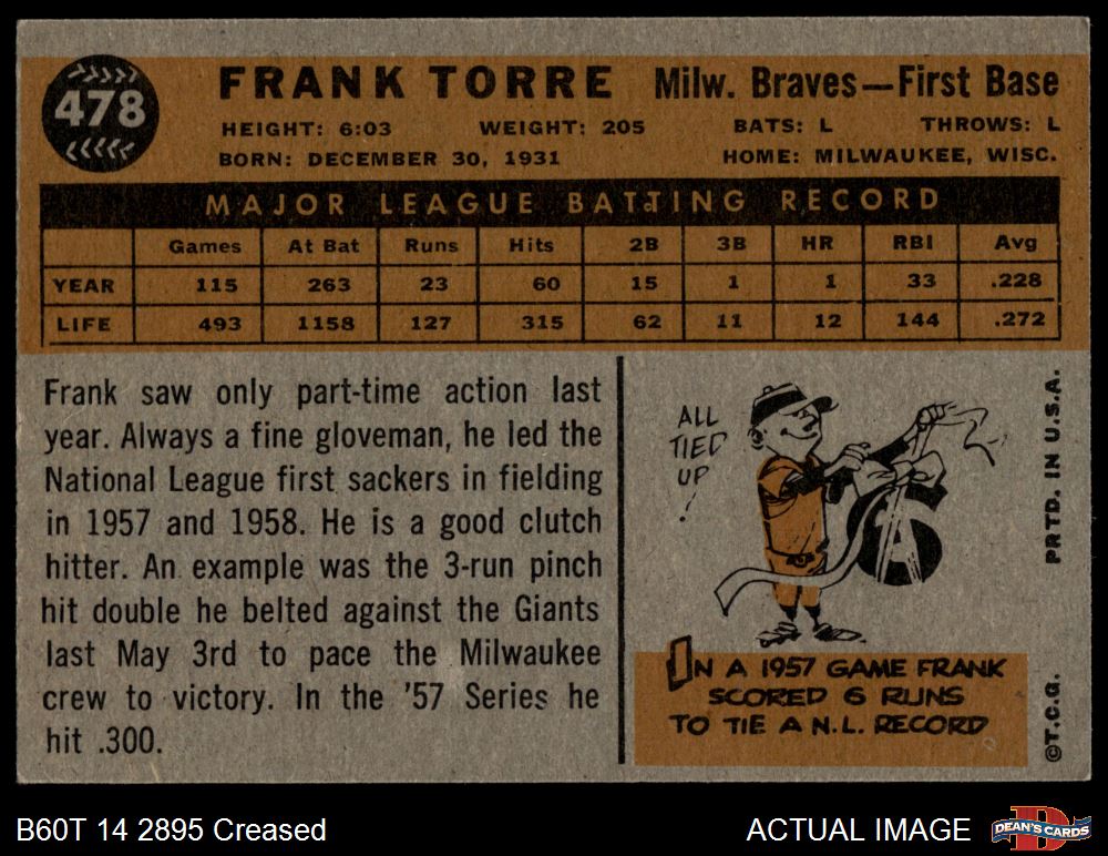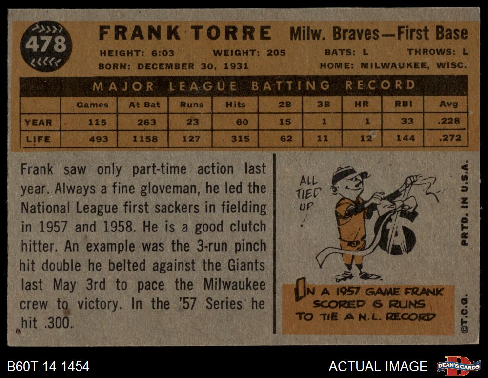 1960 Topps #478 Frank Torre