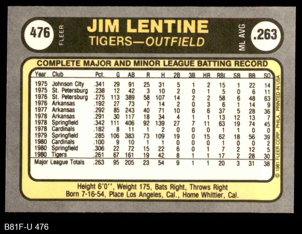 1981 Fleer #476 Jim Lentine 8 - NM/MT