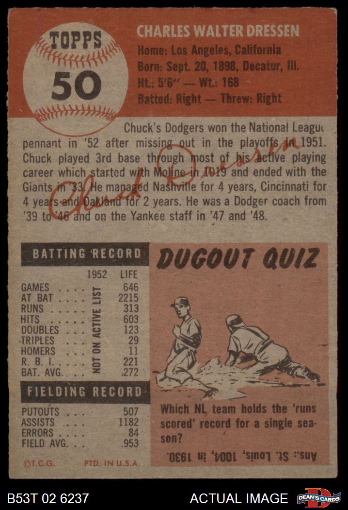1953 Topps #50 Chuck Dressen