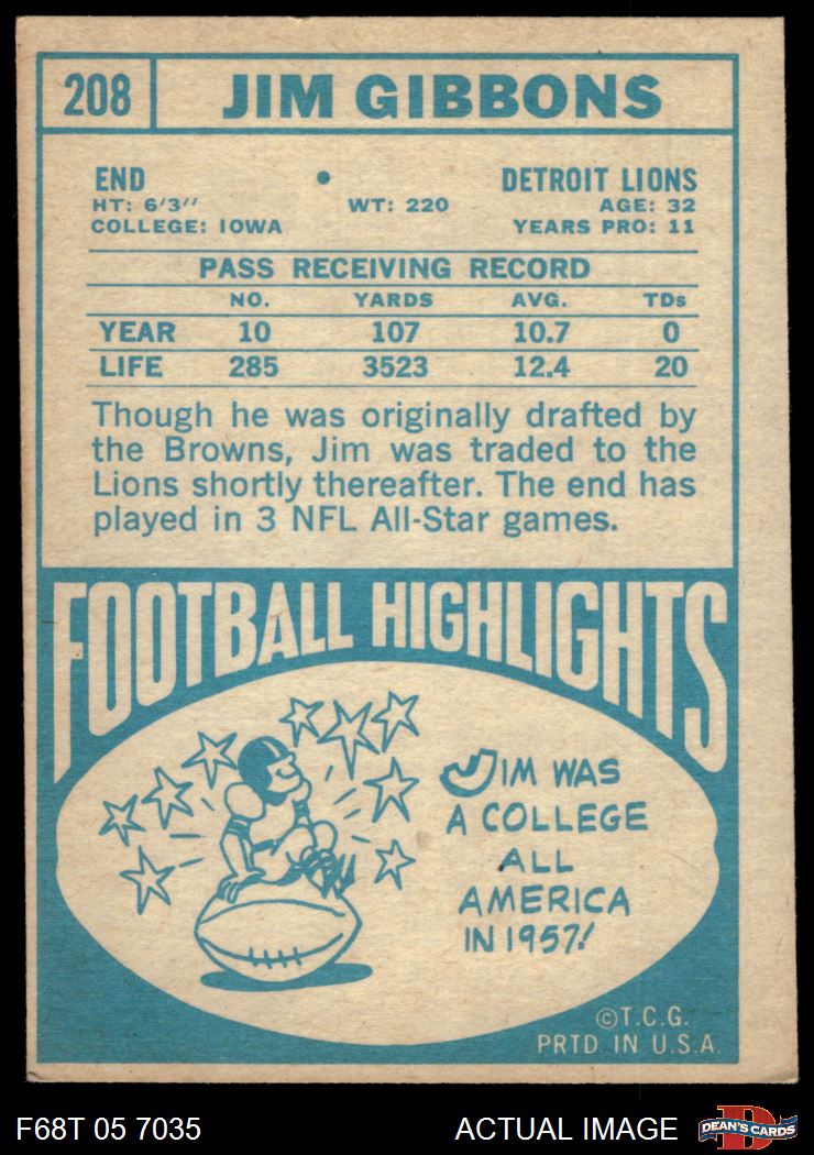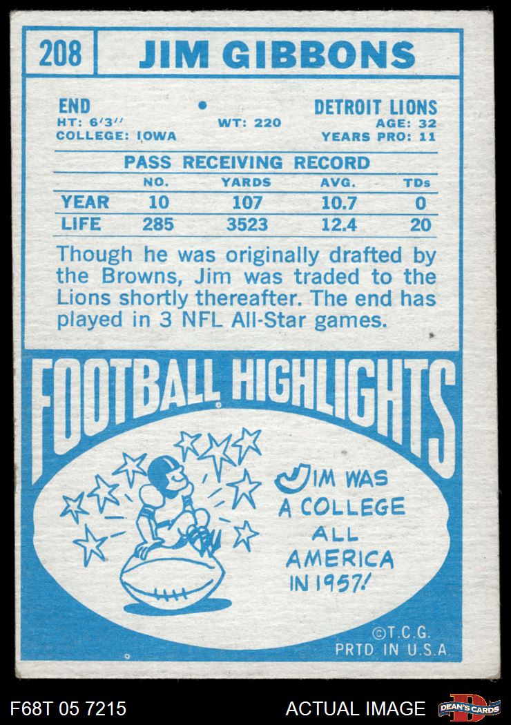 1968 Topps Football Cards (2,590 available)1968 Topps Lions (102 available)