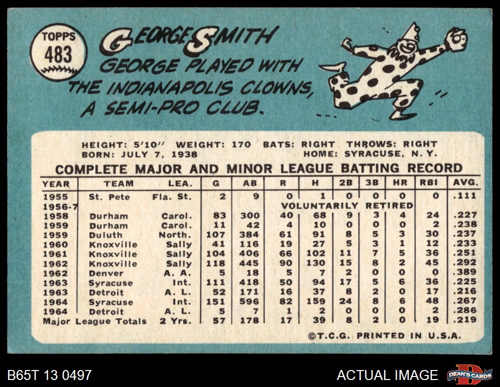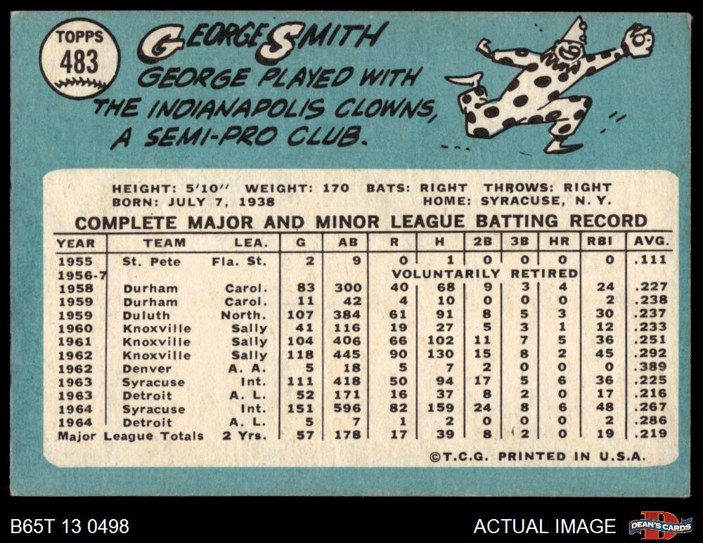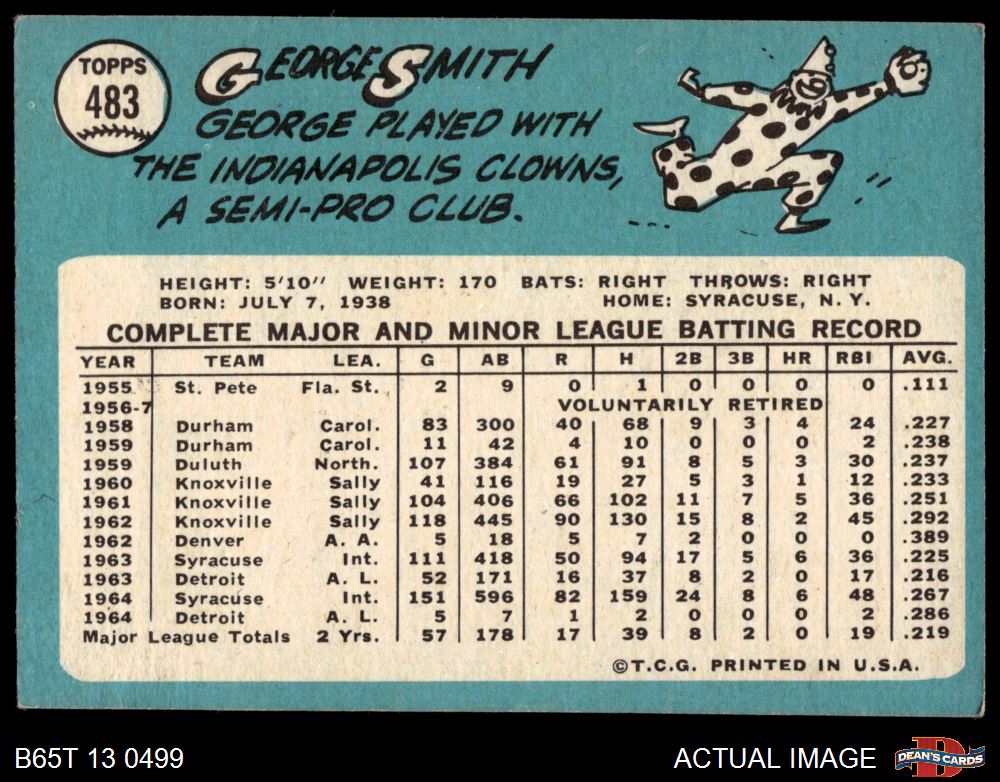 1965 Topps #483 George Smith
