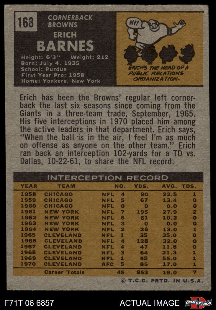 1971 Topps #168 Erich Barnes 4 - VG/EX