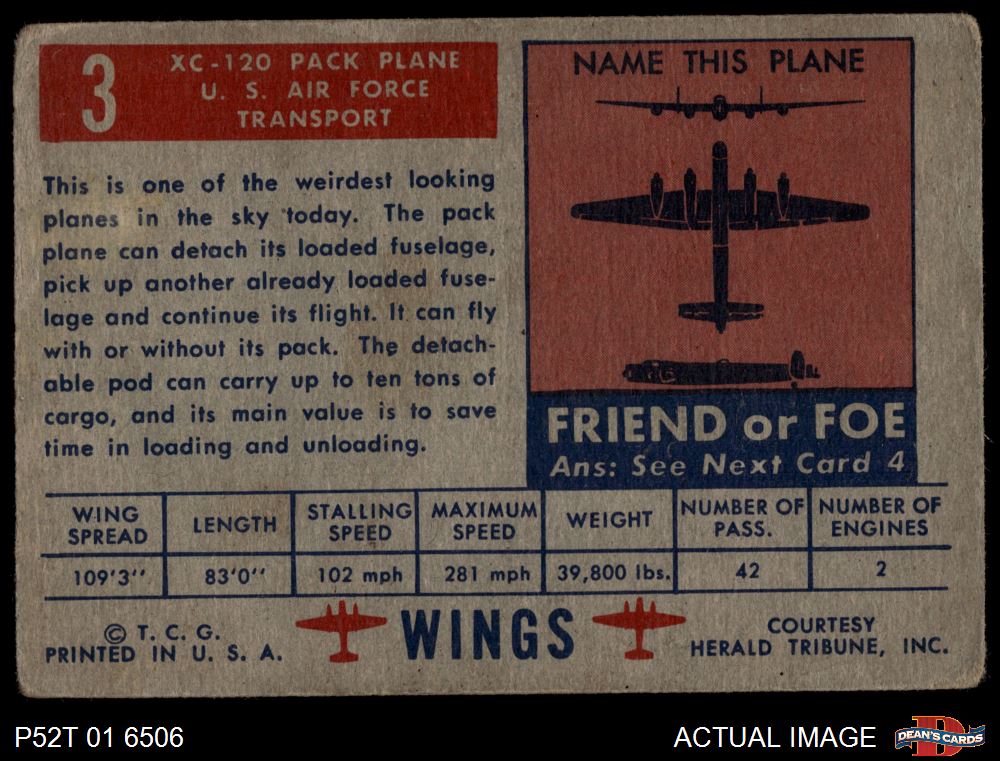 1952 Topps Wings #3 XC-120 Pack Plane 1 - POOR