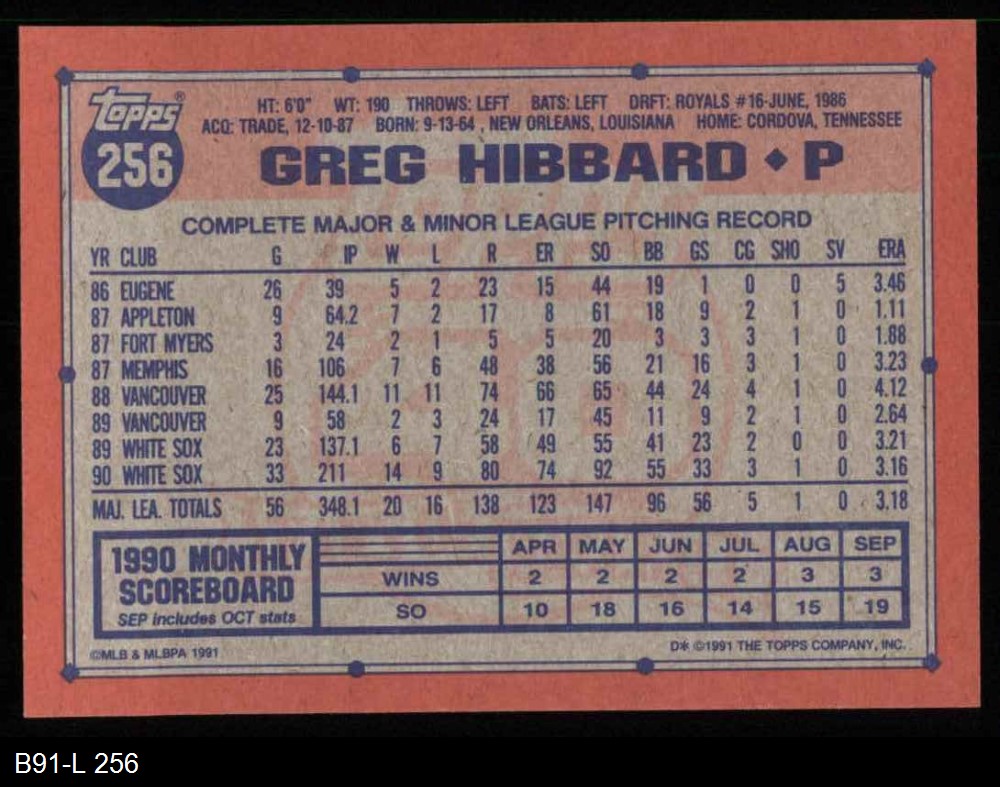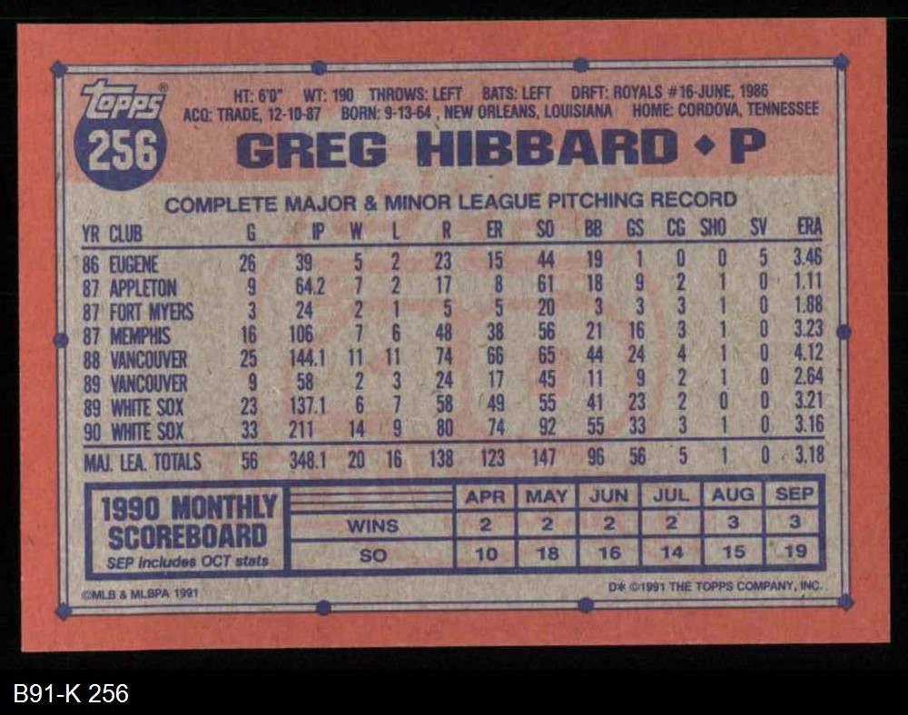 1991 Topps #256 Greg Hibbard