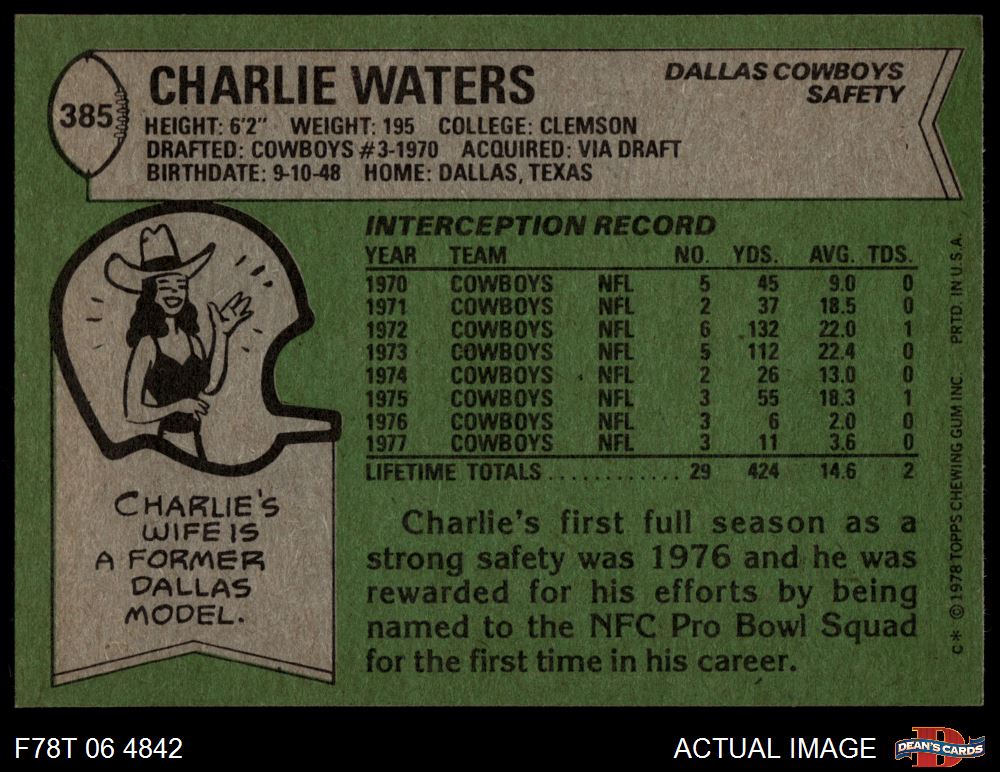 1978 Topps #385 Charlie Waters 4 - VG/EX