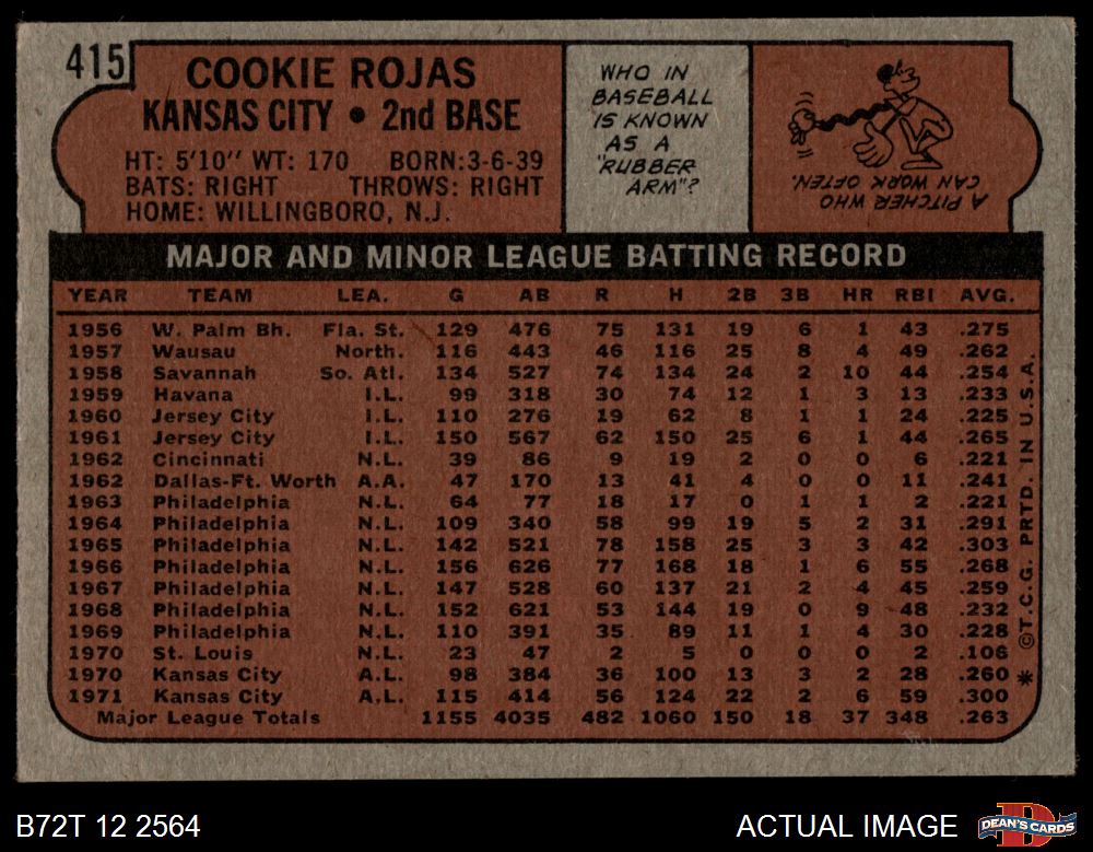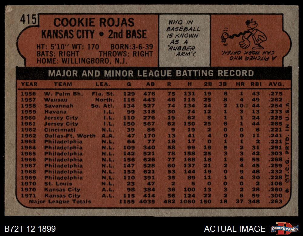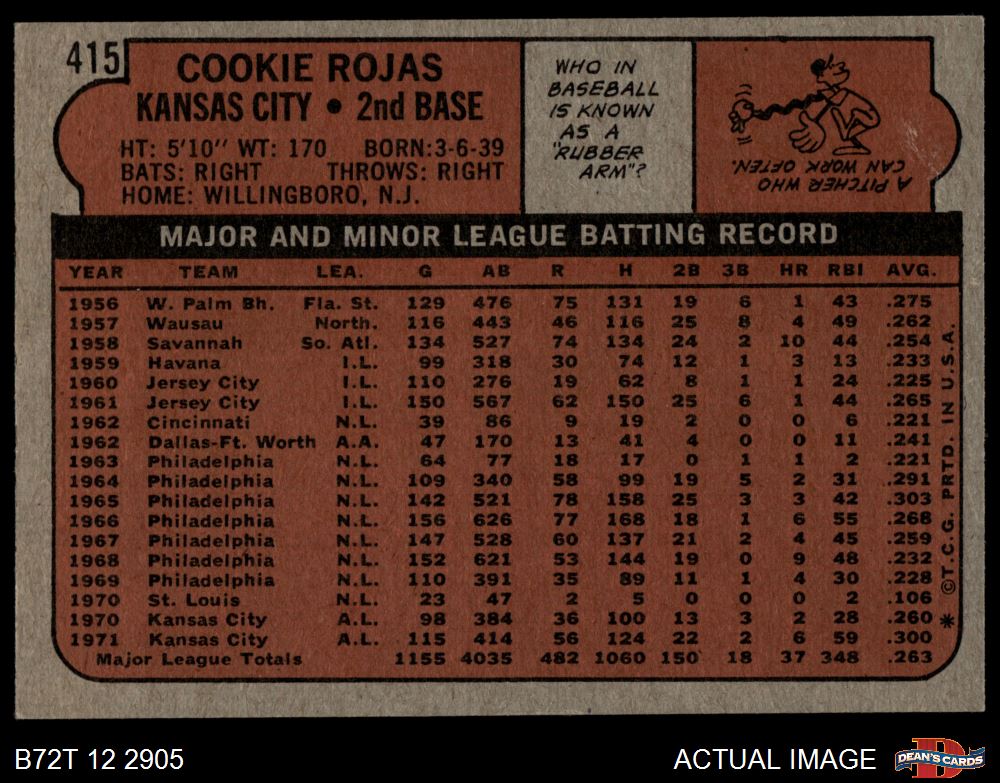 1972 Topps #415 Cookie Rojas 3 - VG