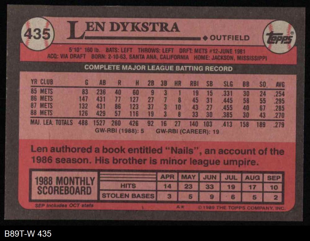 1989 Topps #435 Len Dykstra