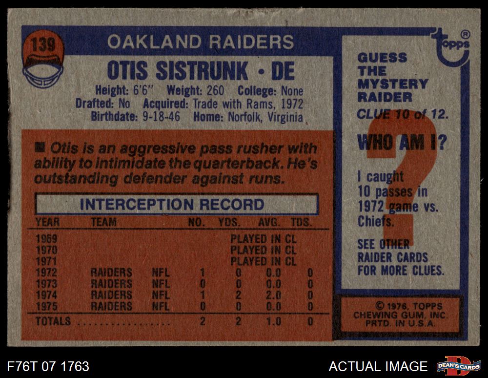1976 Topps #139 Otis Sistrunk 2 - GOOD