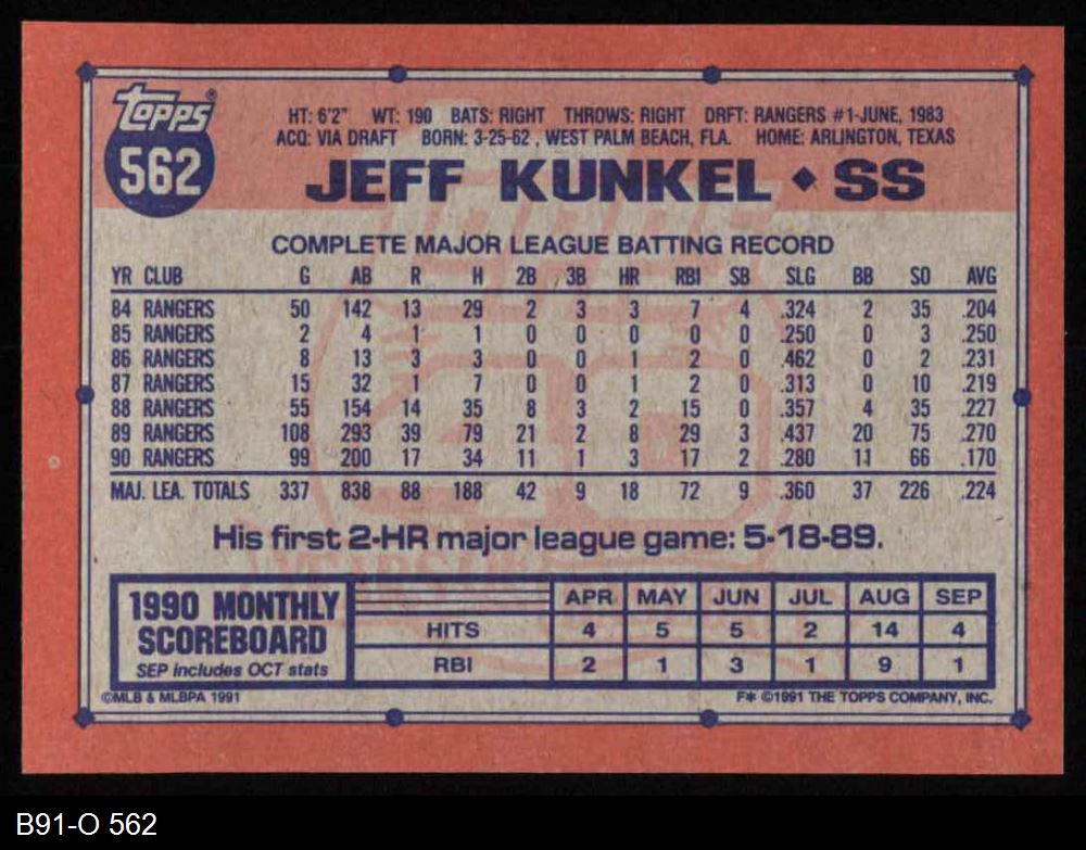 1991 Topps #562 Jeff Kunkel 8 - NM/MT