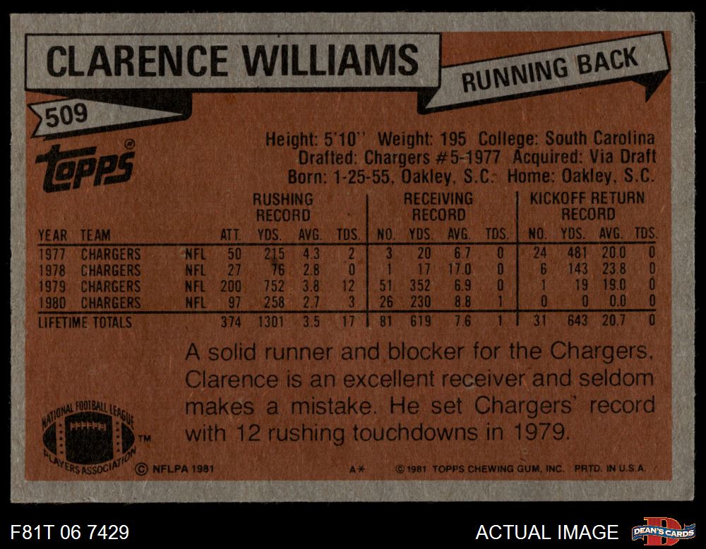 1981 Topps Football Cards (6,263 available)1981 Topps Chargers (247 available)
