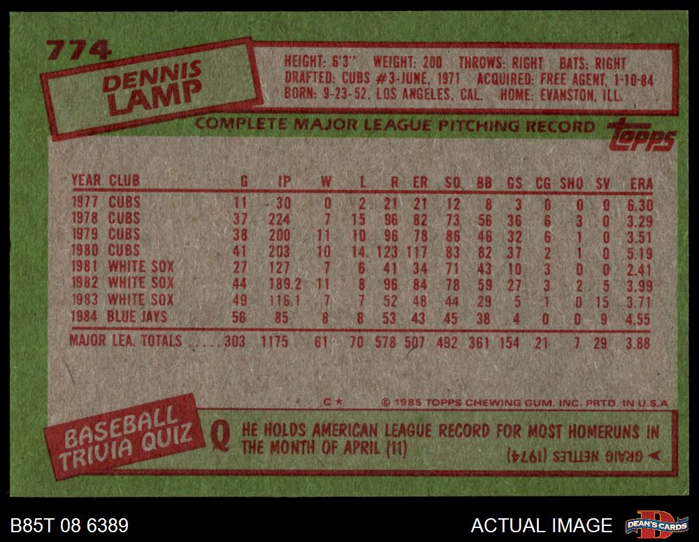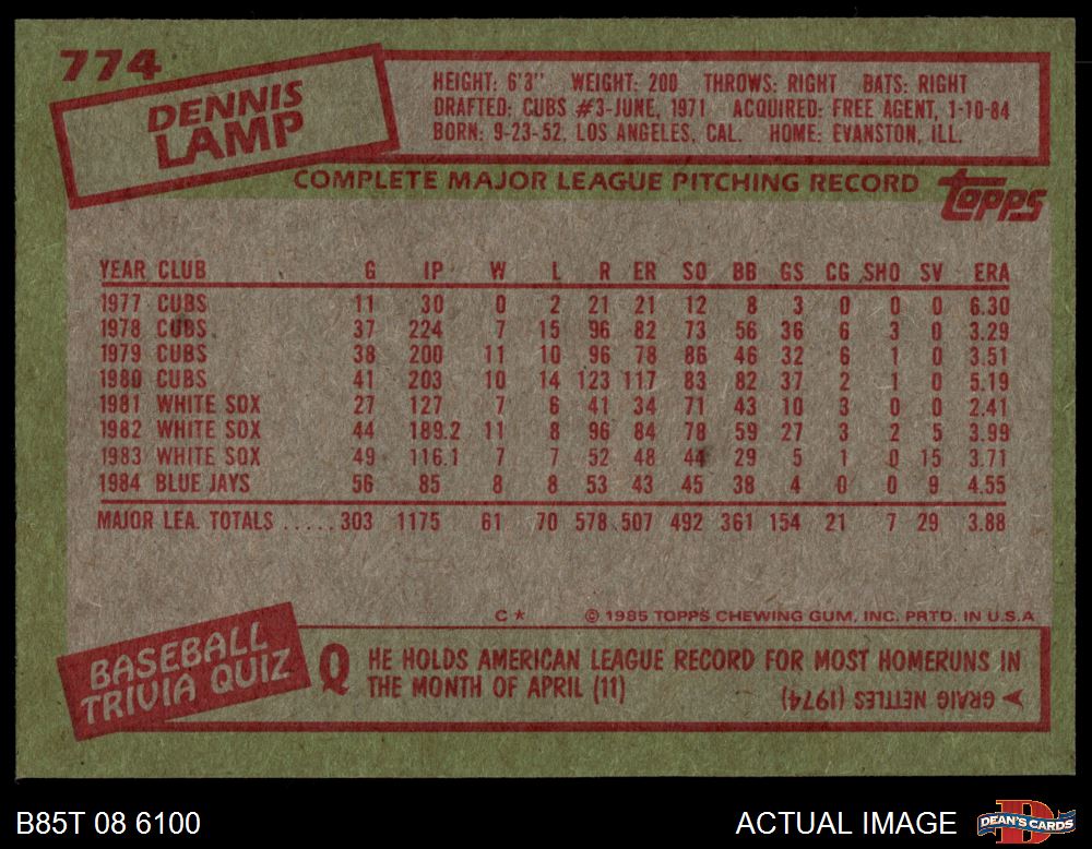 1985 Topps #774 Dennis Lamp