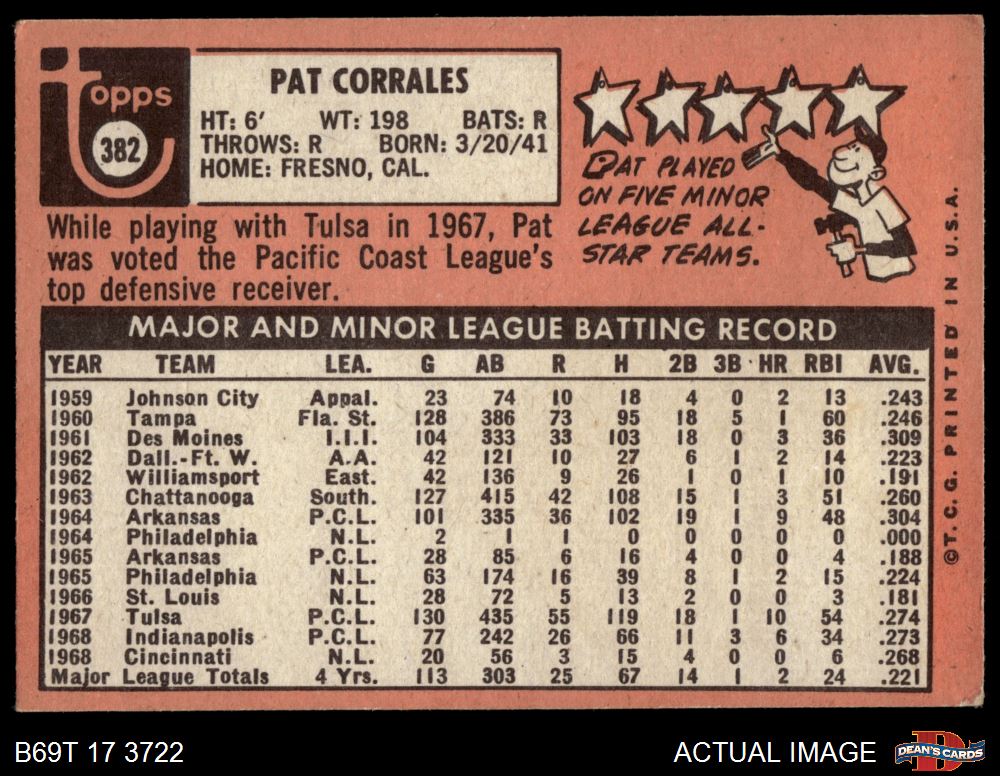 1969 Topps #382 Pat Corrales 4 - VG/EX