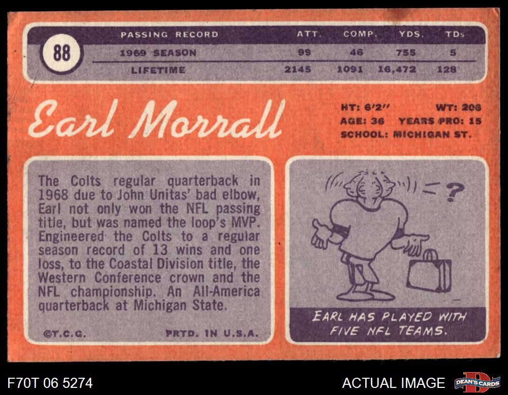 1970 Topps #88 Earl Morrall 3 - VG