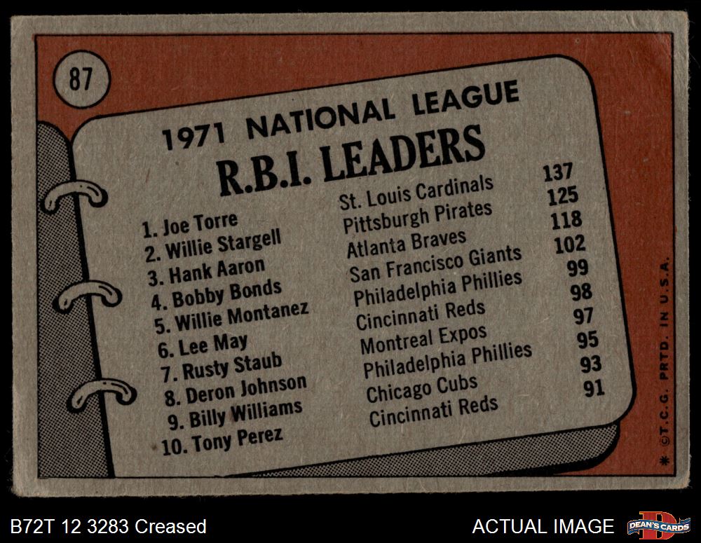 1972 Topps #87 - Hank Aaron / Willie Stargell / Joe Torre NL RBI Leaders 1 - POOR