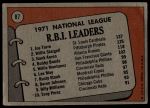 1972 Topps #87  -  Hank Aaron / Willie Stargell / Joe Torre NL RBI Leaders Front Thumbnail
