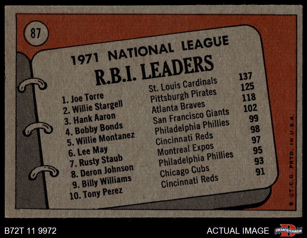 1972 Topps #87 - Hank Aaron / Willie Stargell / Joe Torre NL RBI Leaders 3 - VG
