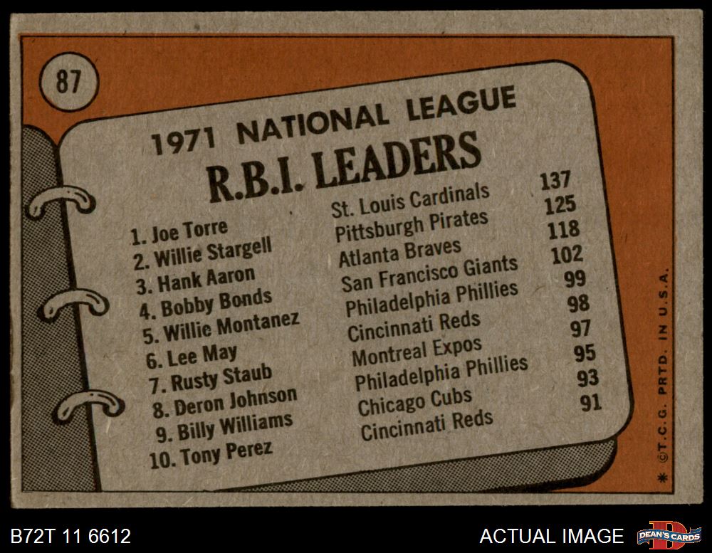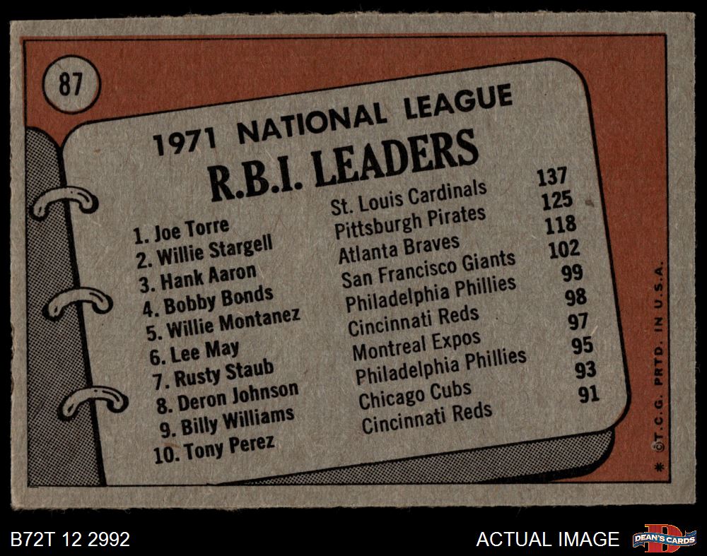 1972 Topps #87 - Hank Aaron / Willie Stargell / Joe Torre NL RBI Leaders 4 - VG/EX