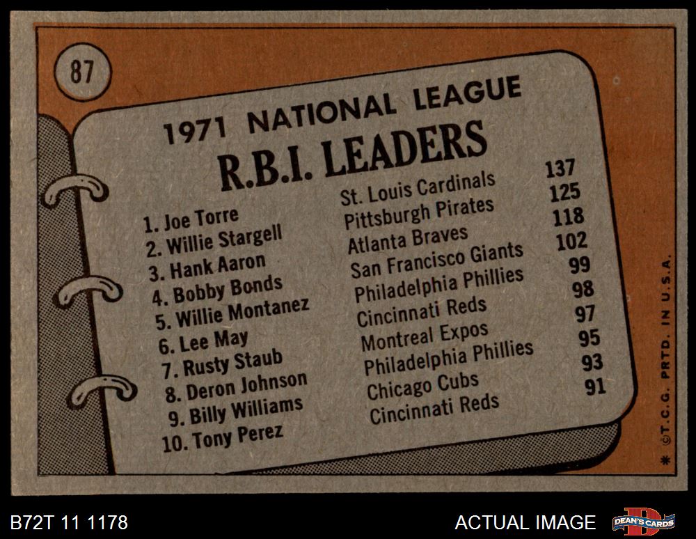 1972 Topps #87 - Hank Aaron / Willie Stargell / Joe Torre NL RBI Leaders 5 - EX