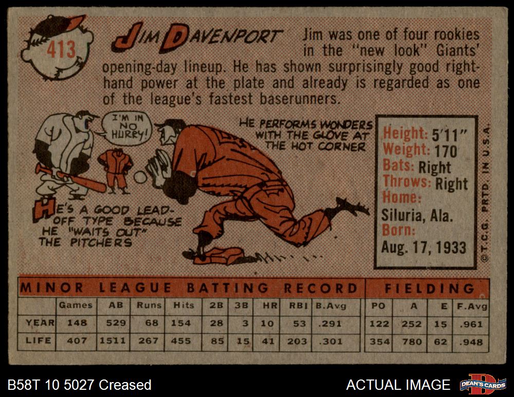 1958 Topps #413 Jim Davenport 3 - vg