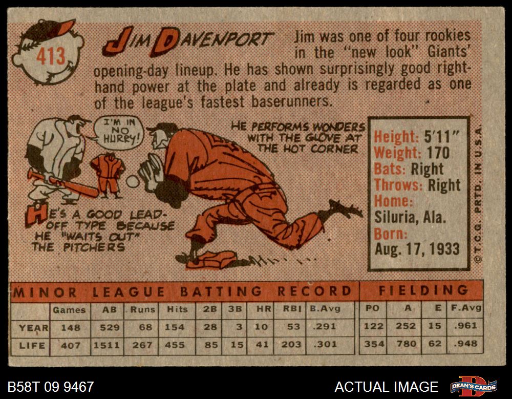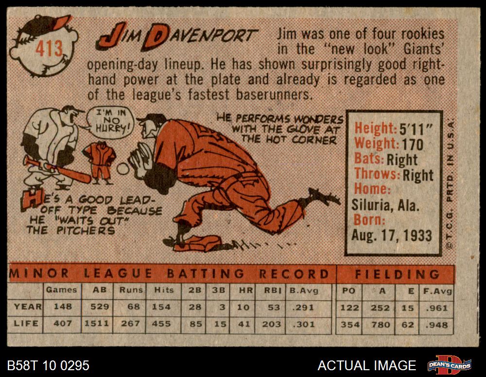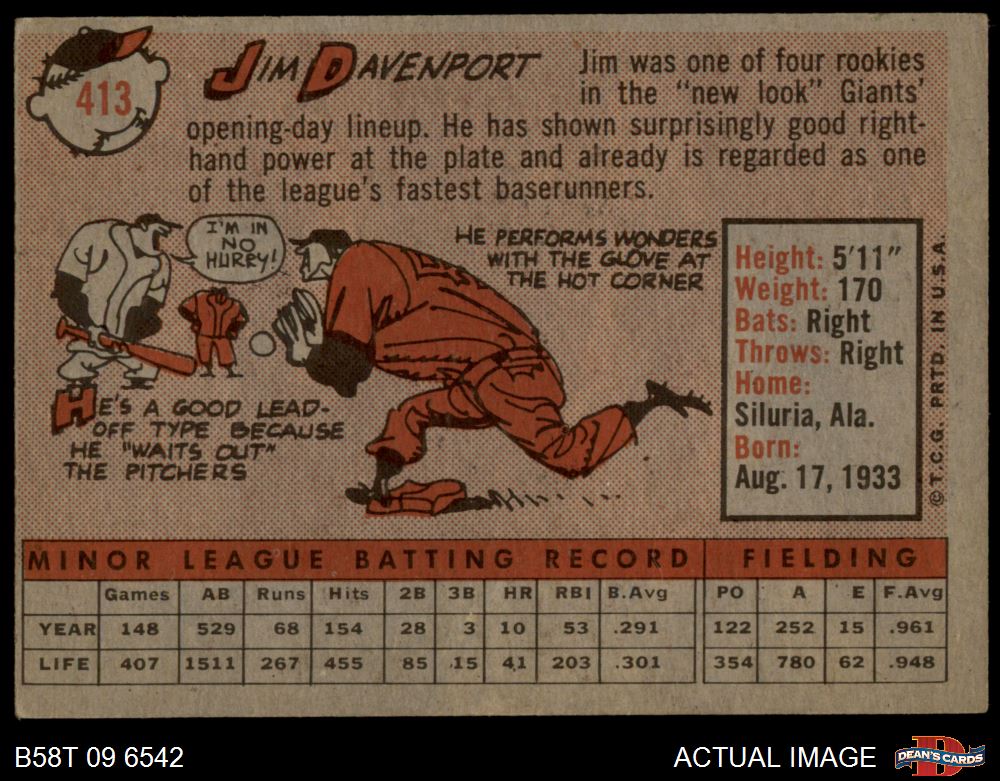 1958 Topps #413 Jim Davenport 4 - VG/EX