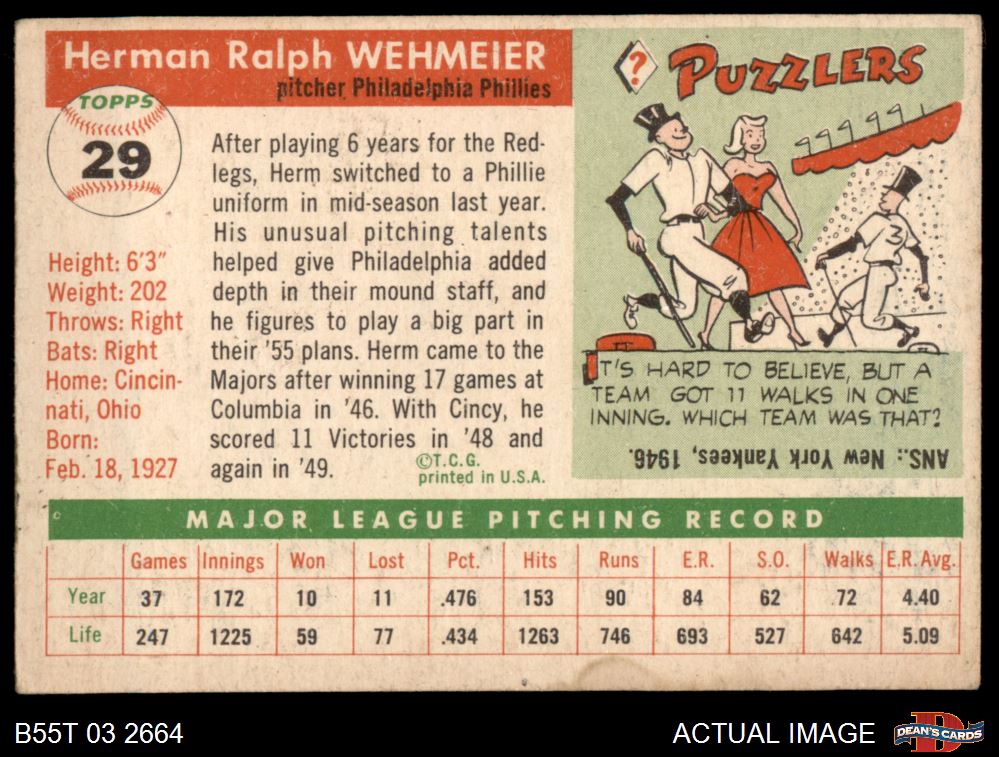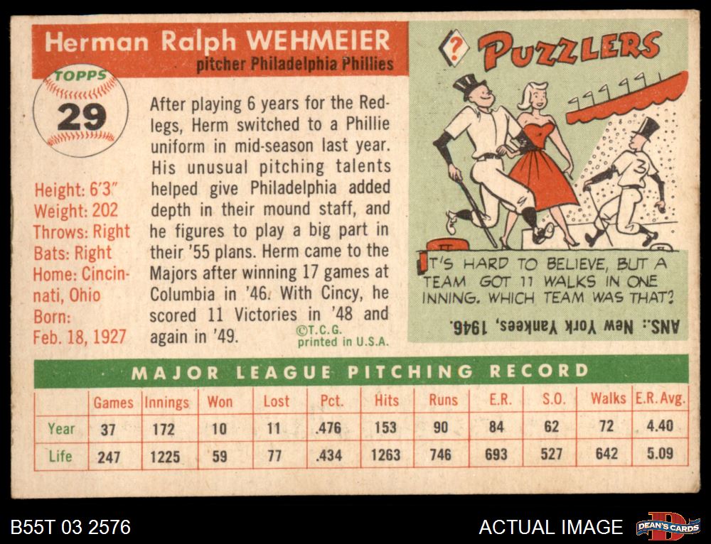 1955 Topps #29 Herm Wehmeier 2 - GOOD