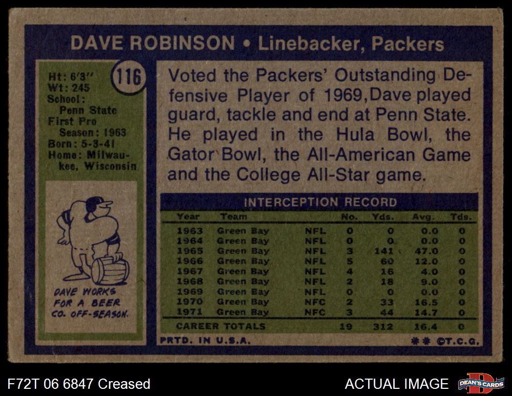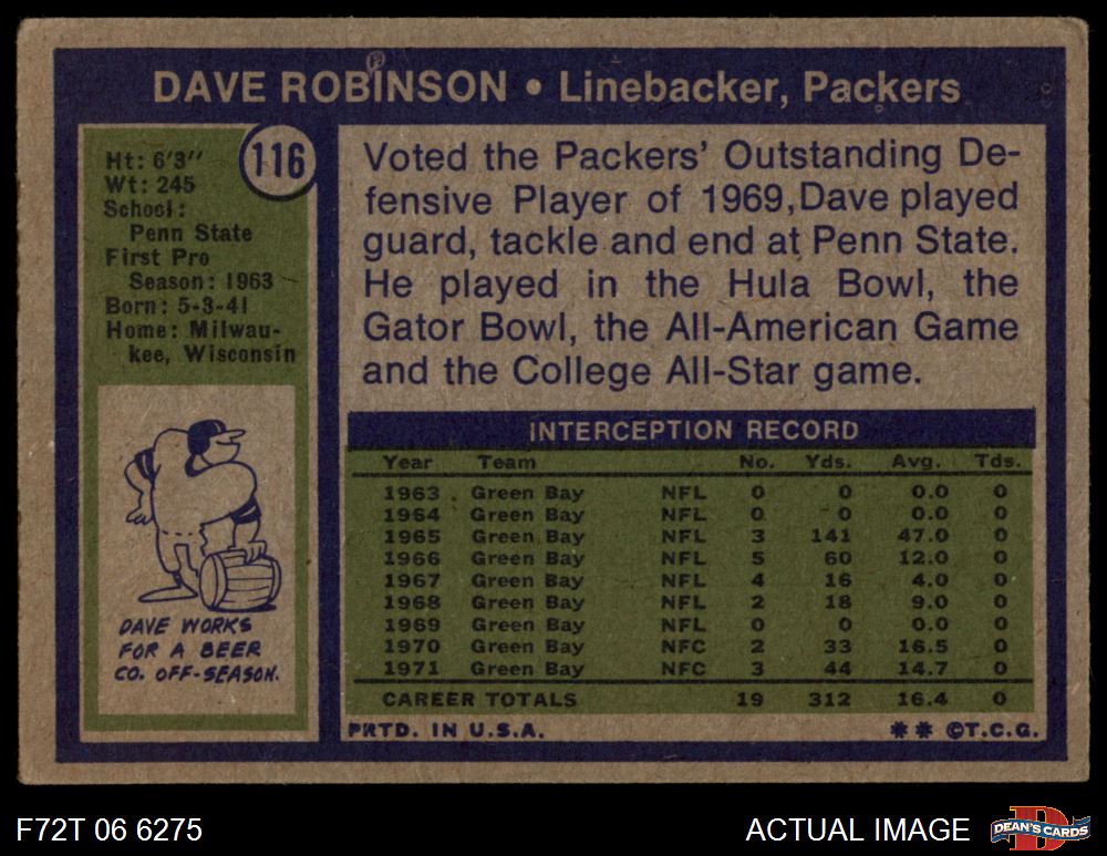 1972 Topps #116 Dave Robinson Front Thumbnail
