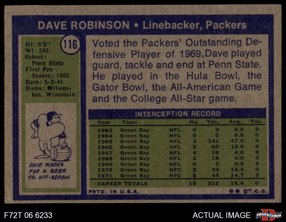 1972 Topps #116 Dave Robinson 4 - VG/EX
