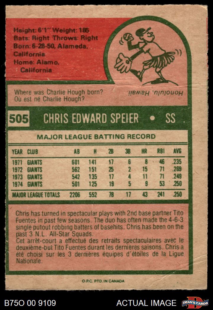 1975 O-Pee-Chee #505 Chris Speier 2 - GOOD