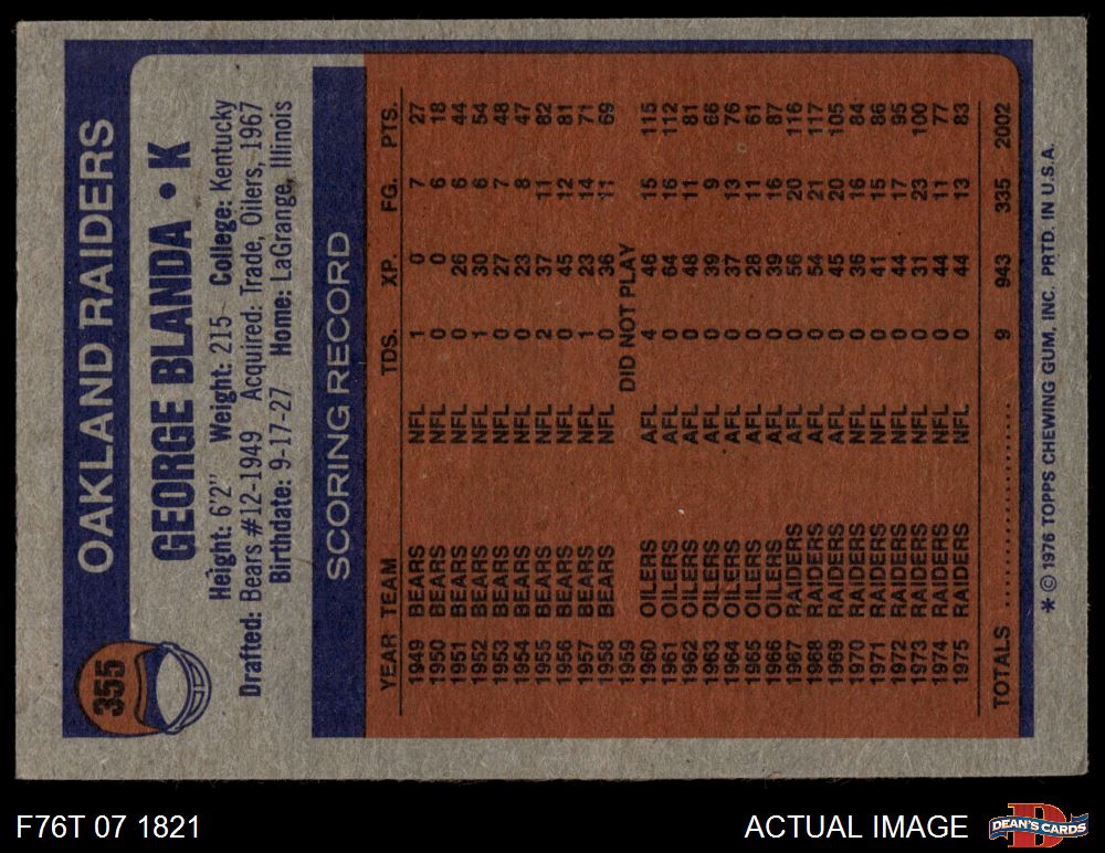 1976 Topps #355 George Blanda