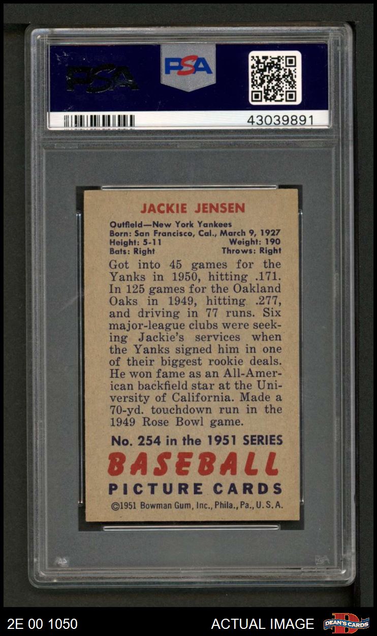 1951 Bowman #254 Jackie Jensen PSA 7 - NM