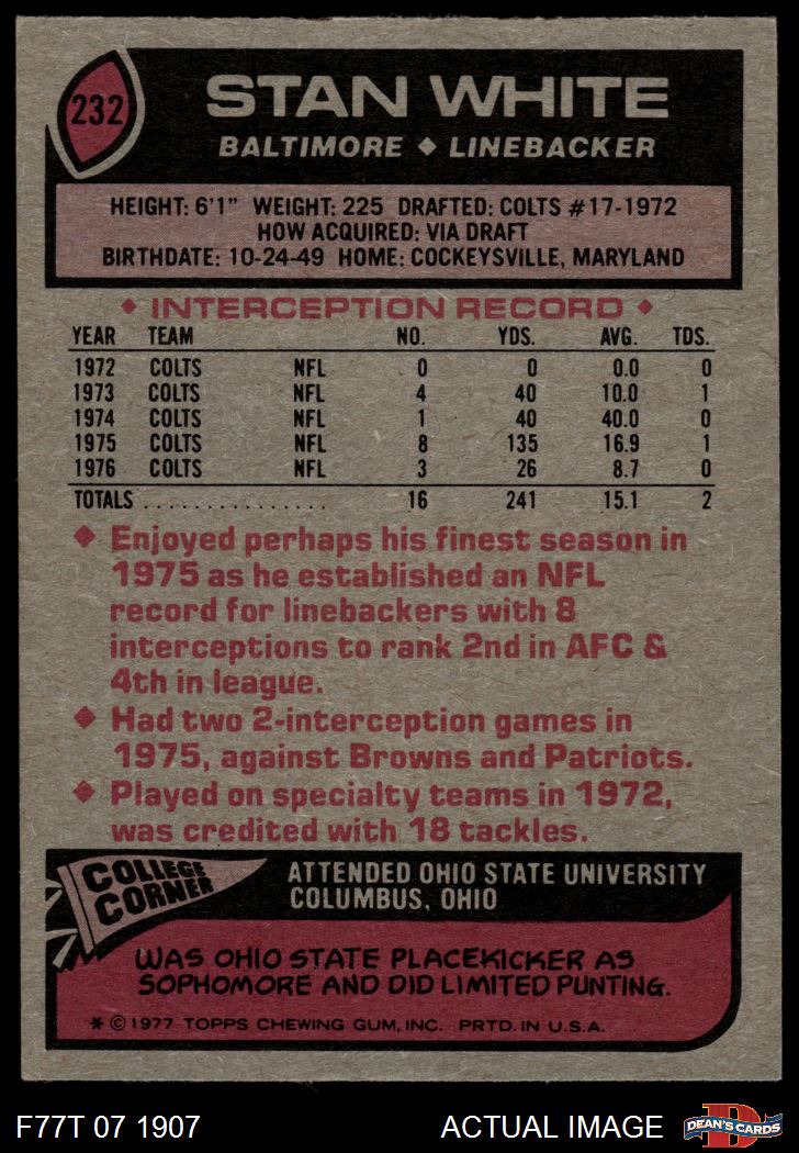 1977 Topps #232 Stan White
