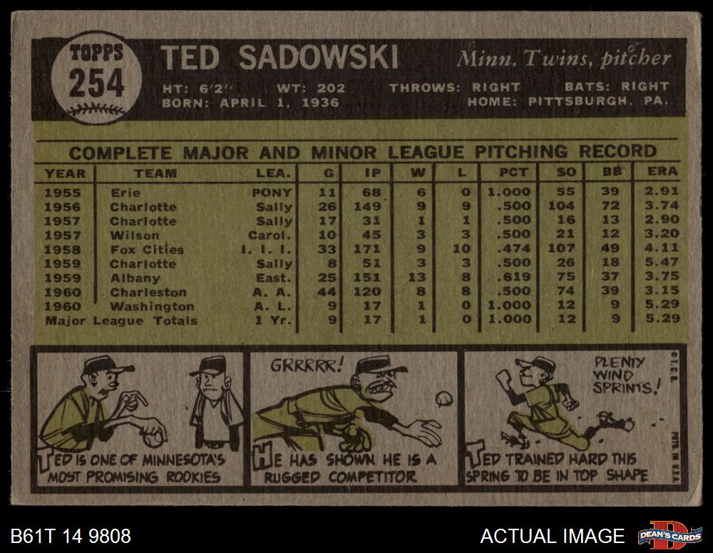 1961 Topps #254 Ted Sadowski 3 - VG