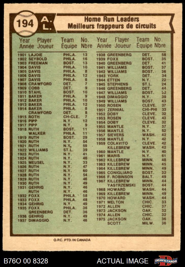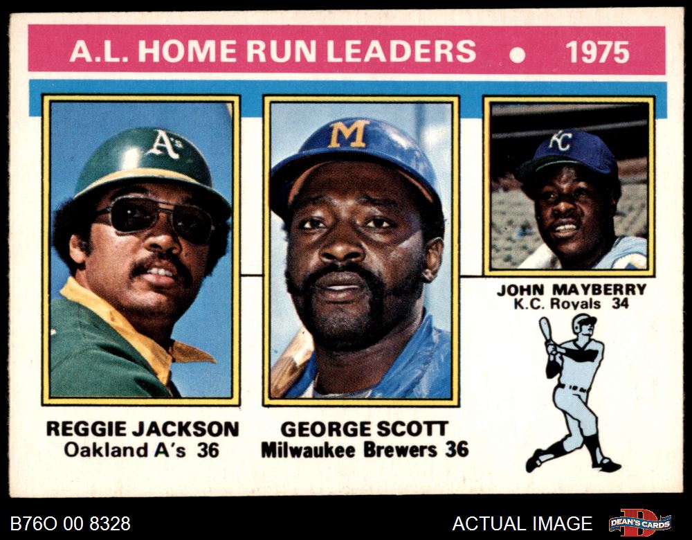 1976 O-Pee-Chee #194 - Reggie Jackson / George Scott / John Mayberry AL HR Leaders 6 - EX/MT