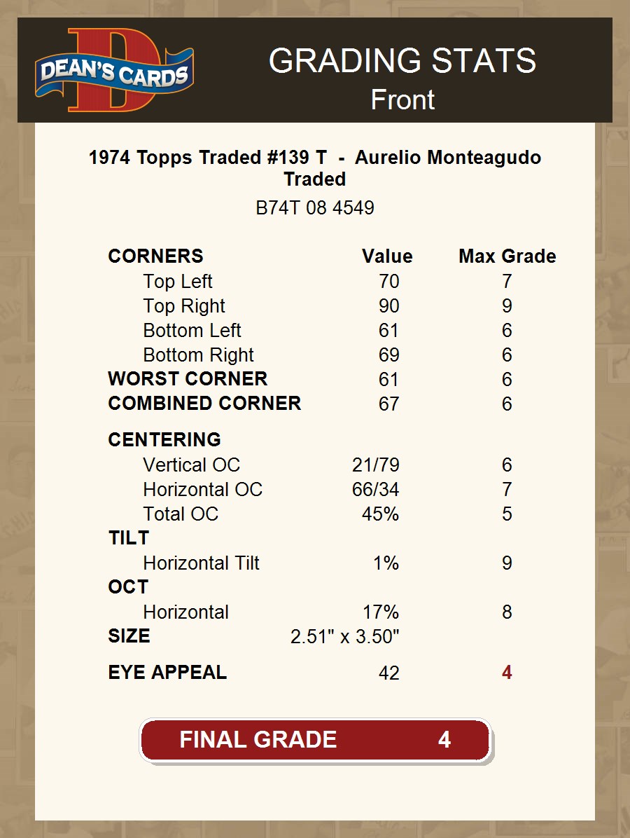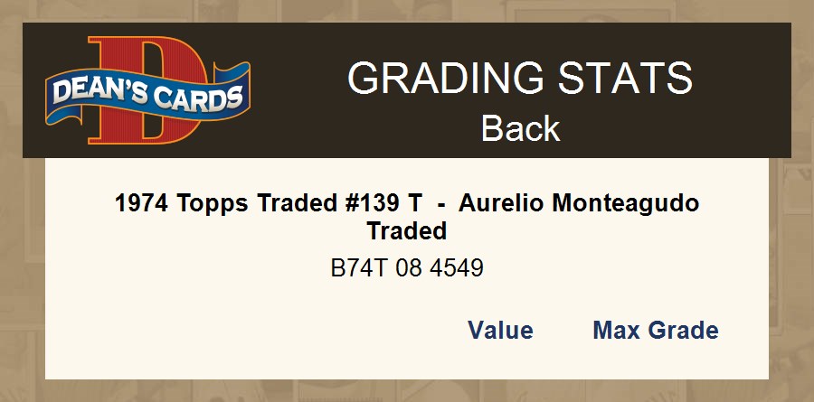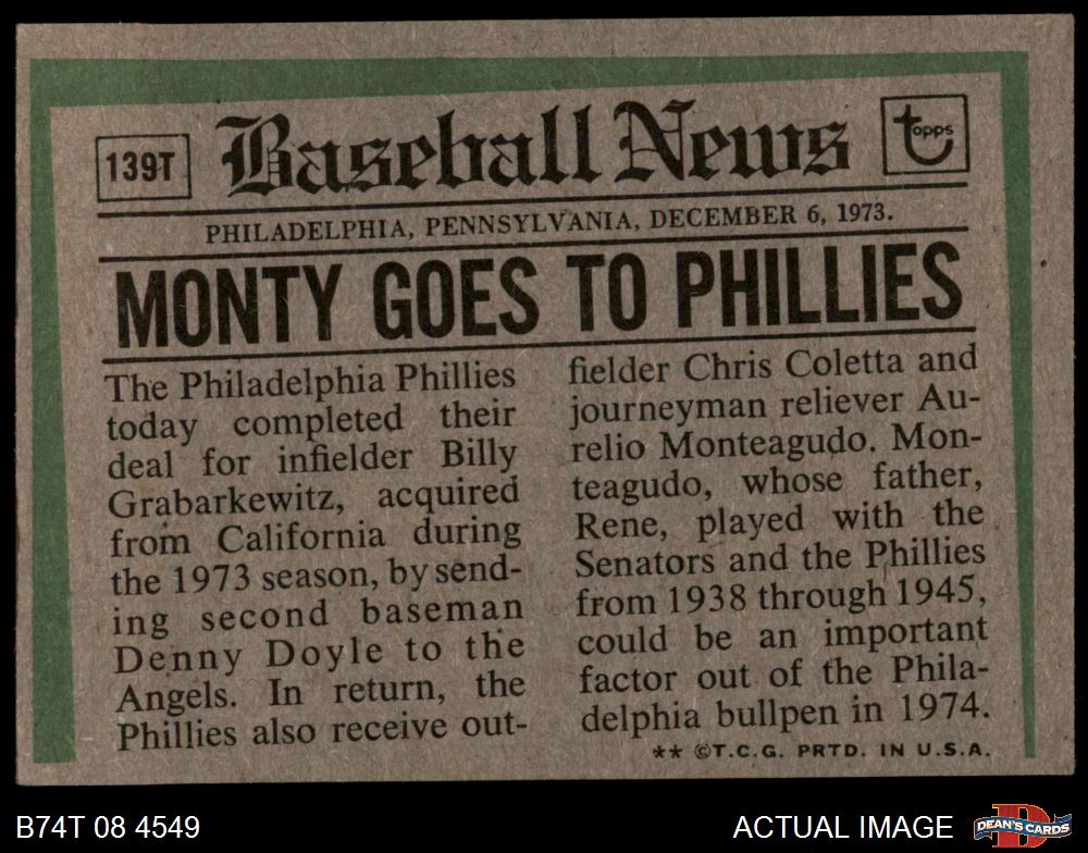 1974 Topps #139 T - Aurelio Monteagudo Traded 4 - VG/EX