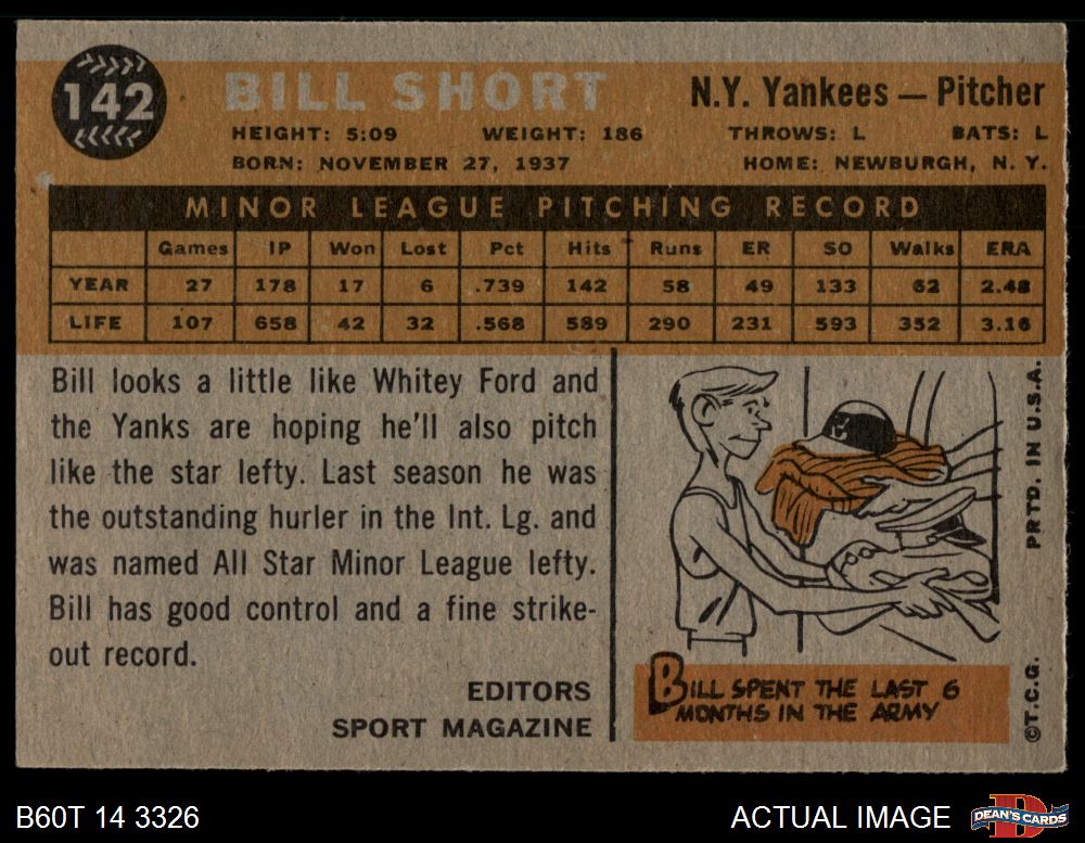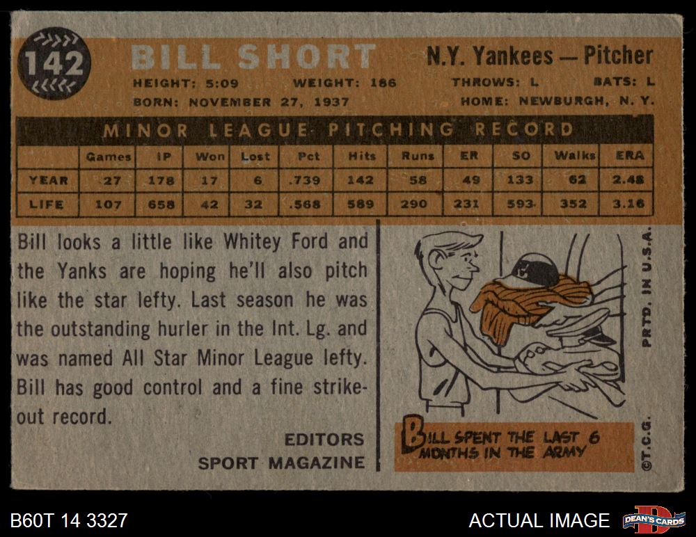 1960 Topps #142 - Bill Short Rookie Star 2 - GOOD